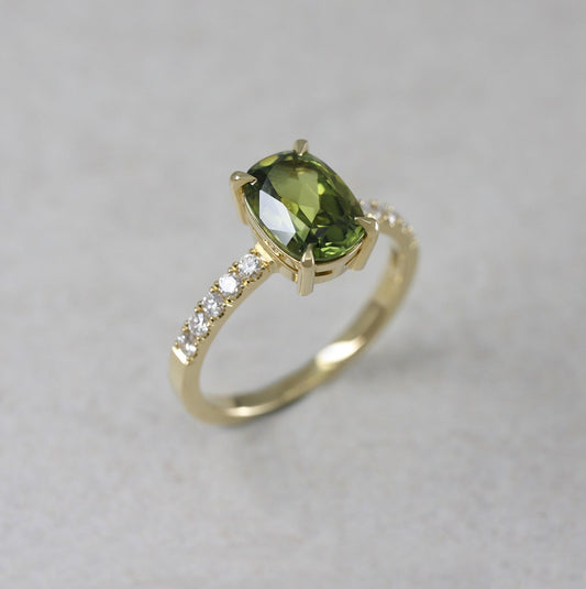 18ct Gold, Australian Green Sapphire and Diamond Ring
