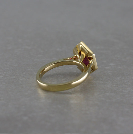 18ct Gold, Ruby and Diamond Hexagon Ring