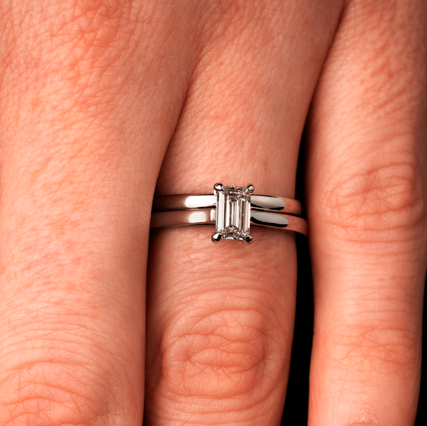 Our emerald-cut diamond solitaire engagement ring is completely handmade from start to finish right here in our Kilkenny city centre studio. A claw set .60 carat D VVS1 GIA certified emerald-cut diamond in platinum. This ring is elegant, understated and absolutely beautiful.